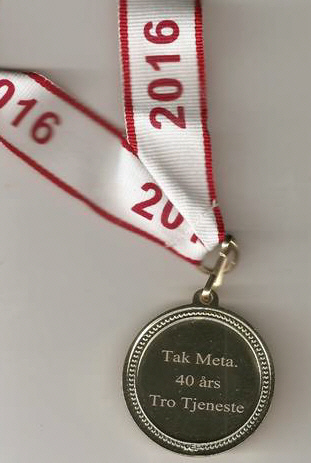 Inden tiden var det blevet undersøgt om det var muligt at komme over for at få en medalje hos Dronningen. Men der var et problem når det var i det private arbejdsliv og når jeg ikke var opsagt eller jeg skulle stoppe kort efter de 40 år. Som privat er det først fra 50 år, så dette var ikke muligt. Men det lagde SLET ikke låg over den dejlige festdag jeg fik.