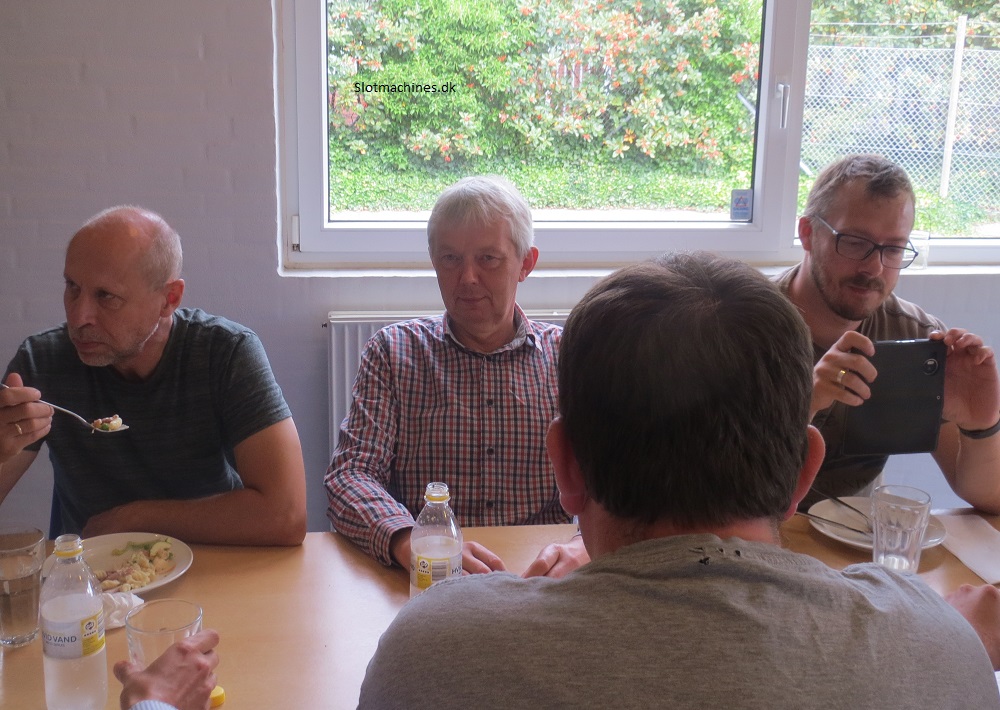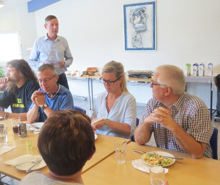 Det blev fejret med rundstykker og kage både i Esbjerg og Århus. I Esbjerg havde Kim lavet en fin tale til Frede i dagens anledning. Frede blev ansat på Energivej, lige inden der kom nye mønter. Her var der rigtig mange indkast som skulle kodes om. Frede har egenlig for det meste haft med ind og udbetalings-enheder at gøre. I dag efter at flere er stoppet i koncernen har Frede overtaget opgaven med at lave proto -metaldele til automaterne. Endvidere har han med de nye styringer til skærmmaskiner at gøre.