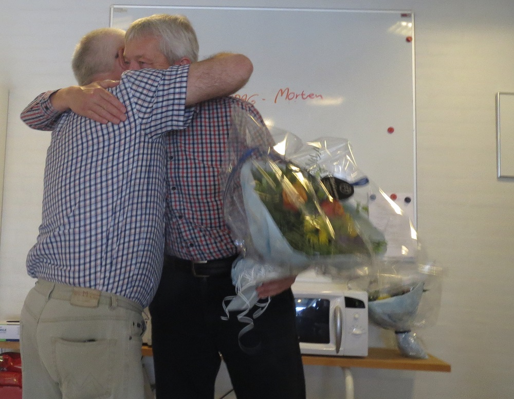 En krammer imellem Kim Pedersen og Frede Pedersen.