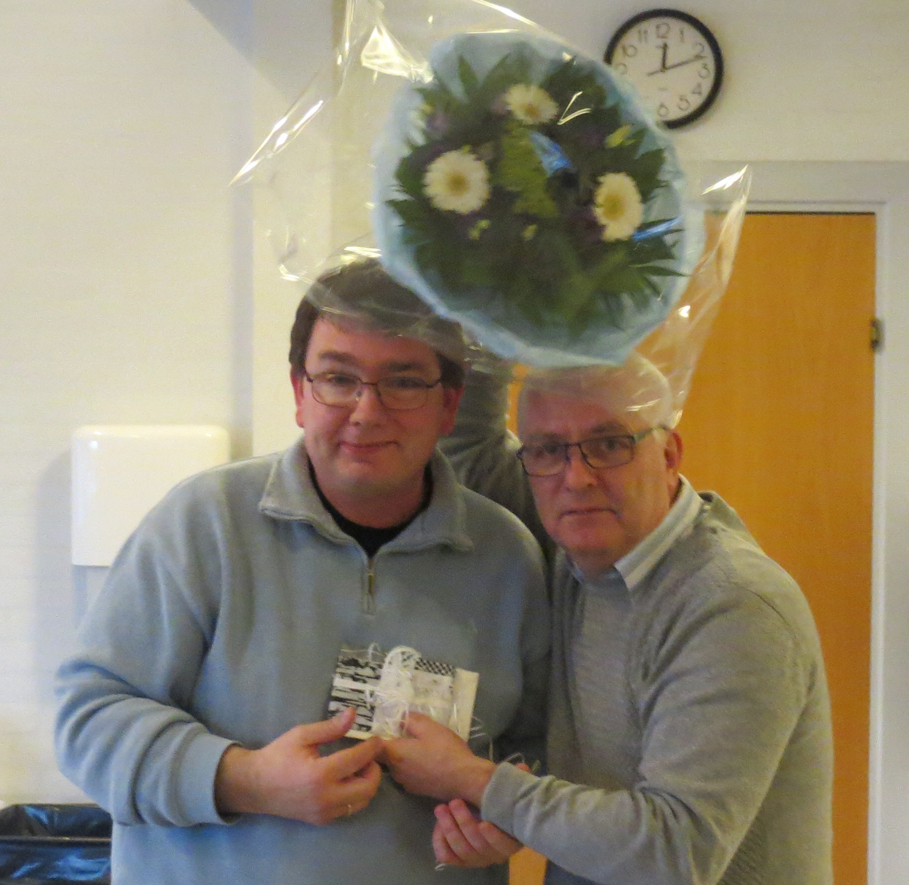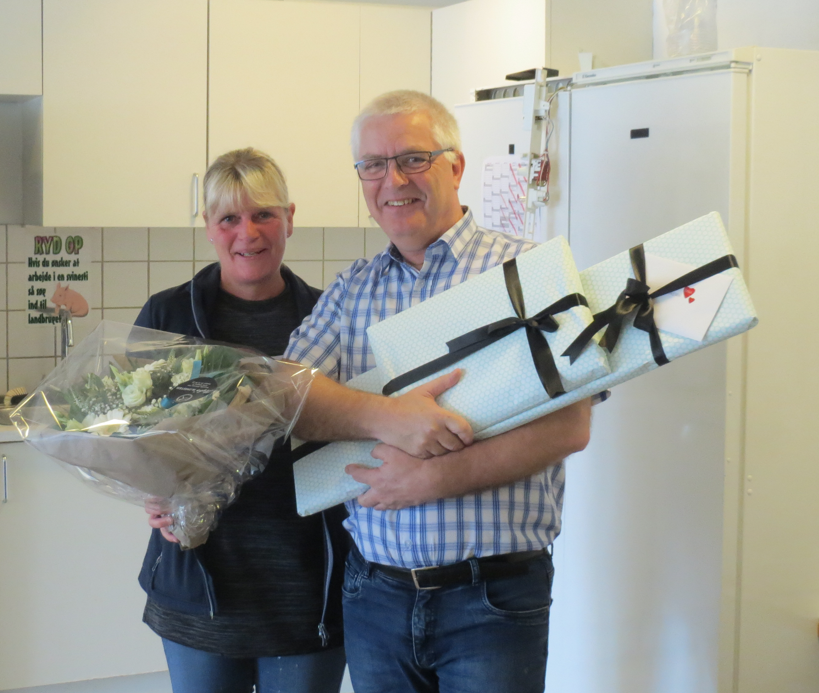 Først havde Kim Pedersen lavet en rigtig flot og meget personlig tale til mig. Tusinde tak. Så blev der overragt gaver i form af et maleri fra personale afdelingen blomster samt en check fra firmaet på 8000 kr.